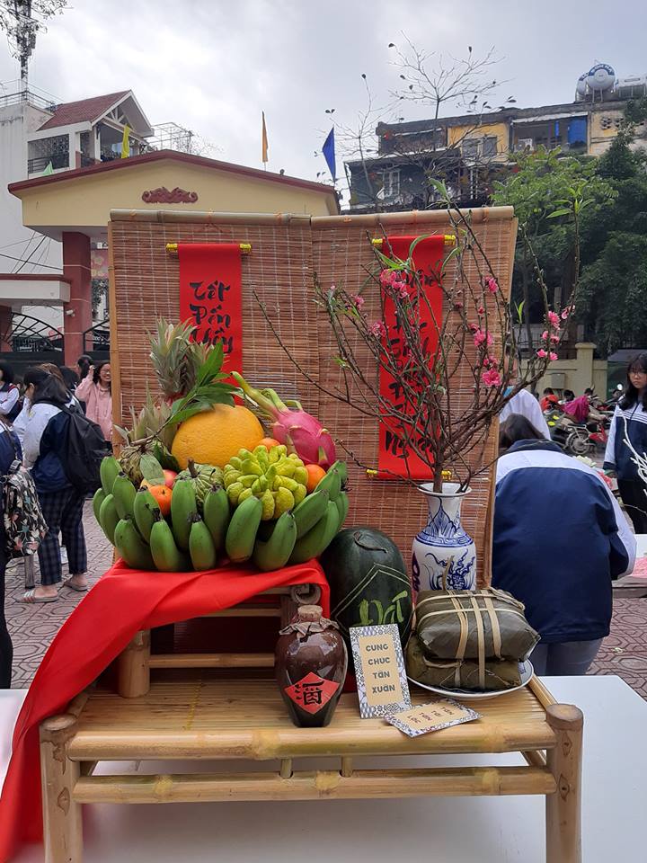 Đúng 9 giờ sáng ngày 30/01, thầy Trần Mạnh Cường, Bí thư Đoàn trường, đại diện cho Ban tổ chức phát biểu khai mạc hội thi, phổ biến các quy định, tiêu chuẩn chấm thi. Trong không khí ấm áp của mùa xuân và sự cổ vũ nồng nhiệt của học sinh toàn trường, 47 đội thi khẩn trương hoàn thiện phần trang trí của mình. Với sự khéo léo và sáng tạo, từ những nguyên vật liệu quen thuộc, các đội dự thi đã mang đến Hội thi nhiều tác phẩm ấn tượng. Những loại quả không chỉ được lựa chọn mang đúng ý nghĩa biểu trưng cho trời, đất, vạn vật giao hòa, cho những ước mong tốt đẹp về năm mới hanh thông, an khang, thịnh vượng mà còn được trang trí rất hài hòa, màu sắc. Bên cạnh đó, những chiếc bánh chưng, những cành đào trang trí đã mang lại không khí Tết cho hội thi. Ban giám khảo đã chọn ra mỗi khối 3 đội thi xuất sắc nhất lọt vào vòng trong để thuyết trình về ý tưởng của mình. Qua phần thuyết trình các em đã thể hiện sự tìm tòi, am hiểu về văn hóa cổ truyền của dân tộc cùng những ý tưởng rất sáng tạo để phát huy bản sắc văn hóa dân tộc trong thời kì hiện đại.